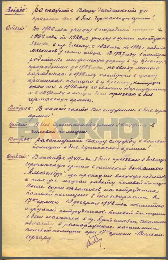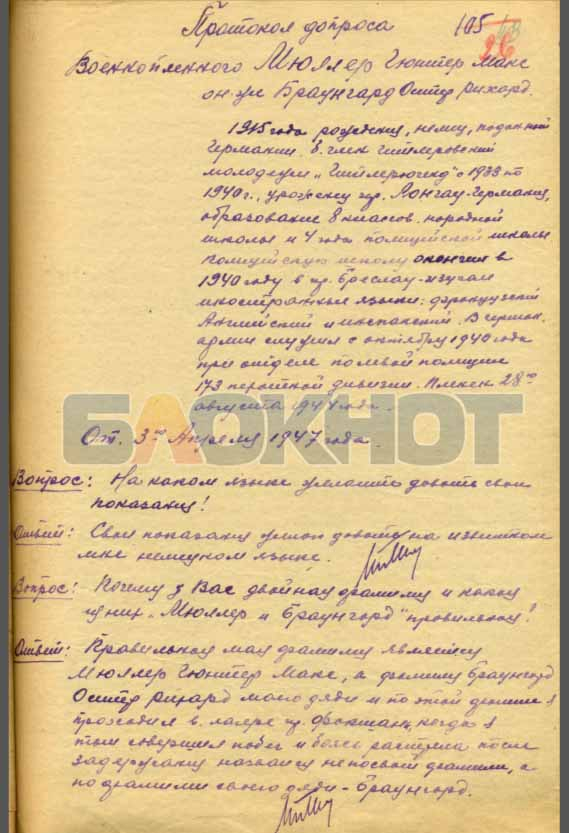 «Только из Красноармейска лично мной до 350 человек было направлено в Германию и по 100 – расстреляно», – следует из протокола допроса Мюллера-Браунгарда.