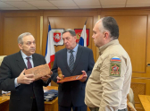 Президент Межрегиональной общественной организации содействия изучению и эксплуатации военной техники «ВОЕННО-ТЕХНИЧЕСКОЕ ОБЩЕСТВО» Алексей Мигалин передал фрагмент стены Директору Международного центра развития социально-значимых проектов «Святые Лавры Руси Православной» Владимиру Березовскому.